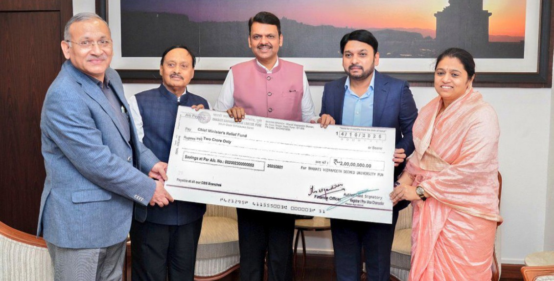 ते पुढे म्हणाले, “या पावसाळ्यात अतिवृष्टी आणि पुरामुळे मराठवाडा, विदर्भ आणि पश्चिम महाराष्ट्रात मोठे नुकसान झाले आहे. या पूरग्रस्तांना नव्याने उभे राहण्यासाठी बळ देण्यासाठी भारती परिवार सदैव तत्पर राहिला आहे.”या भेटीत राज्यातील विविध राजकीय, सामाजिक आणि शैक्षणिक विषयांवरही मुख्यमंत्री फडणवीस यांच्याशी विस्तृत चर्चा झाली.यावेळी भारती विद्यापीठाचे कुलपती मा. डॉ. शिवाजीराव कदम, कुलगुरू डॉ. विवेक सावजी आणि कार्यकारी संचालिका डॉ. अस्मिता जगताप उपस्थित होत्या.