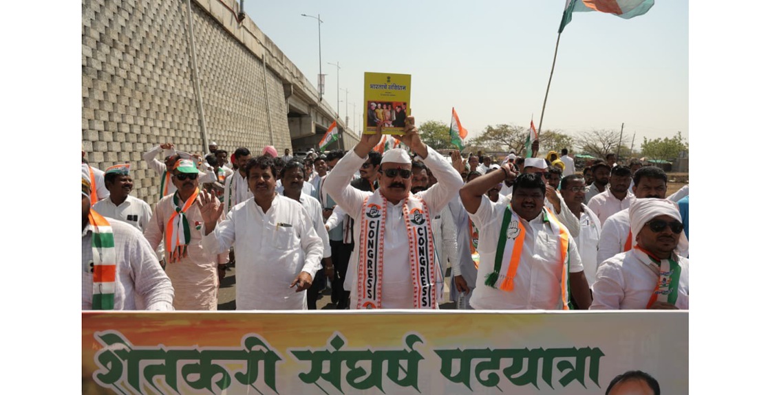 शेतक-यांच्या प्रश्नांवर आज काँग्रेस प्रदेशाध्यक्ष हर्षवर्धन सपकाळ यांच्या नेतृत्त्वाखाली कमळनुरी ते हिंगोली शेतकरी संघर्ष पदयात्रा काढण्यात आली. सकाळी माजी खासदार स्व. राजीव सातव यांच्या स्मृतीस्थळाला अभिवादन करून पदयात्रेची सुरुवात करण्यात आली. यावेळी काँग्रेस प्रदेशाध्यक्ष हर्षवर्धन सपकाळ, प्रदेश कॉंग्रेस कमिटीचे वरिष्ठ उपाध्यक्ष मोहन जोशी, प्रदेश उपाध्यक्ष सचिन नाईक, ओबीसी विभागाचे प्रदेशाध्यक्ष प्रा. यशपाल भिंगे, एस.सी. सेलचे प्रदेशाध्यक्ष सिद्धार्थ हत्तीअंबिरे, प्रदेश सरचिटणीस साहेबराव कांबळे, डॉ. सतीश पाचपुते, सुरेंद्र घोडजकर, मुजाहिद पठाण, आरिझ बेग, हिंगोली काँग्रेस जिल्हाध्यक्ष सुरेश अप्पा सराफ यांच्यासह स्थानिक पदाधिकारी, कार्यकर्ते आणि शेतकरी बांधव मोठ्या संख्येने उपस्थित होते.