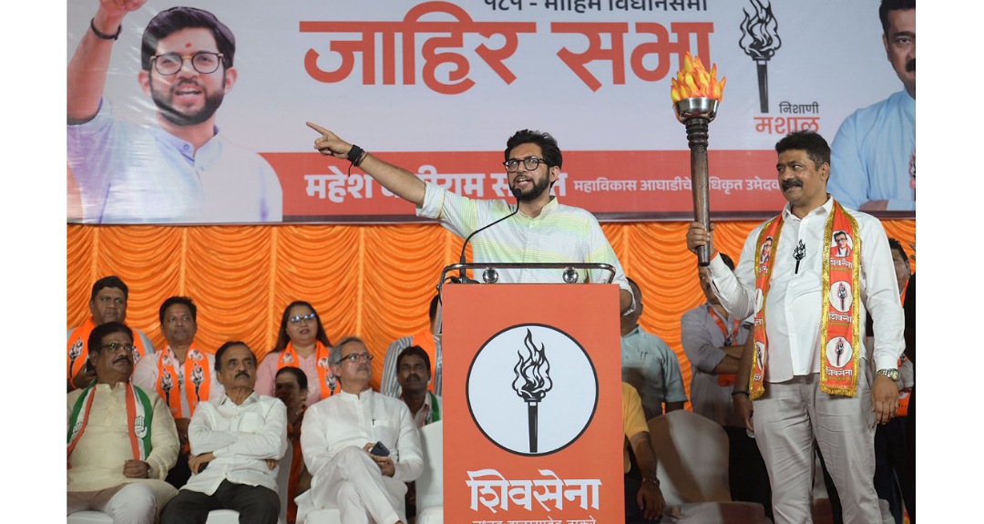 मुंबई: महाराष्ट्रातील भूमीपुत्रांचा रोजगार गुजरातला पळविणाऱ्या व शिवसेना पक्ष फोडण्याचे पाप करणाऱ्या भाजपला बिनशर्त पाठींबा देणाऱ्या महाराष्ट्र नवनिर्माण सेनेला या विधानसभा निवडणुकीत धडा शिकवा, अशा शब्दांत शिवसेना उद्धव बाळासाहेब ठाकरे पक्षाचे नेते आदित्य ठाकरे यांनी महाराष्ट्र नवनिर्माण सेनेवर जोरदार हल्ला चढविला.शिवसेना उद्धव बाळासाहेब ठाकरे पक्षाचे माहिम विधानसभेचे उमेदवार महेश सावंत यांच्या प्रचारार्थ दादरच्या खांडके बिल्डिंग परिसरात आयोजित जाहीर सभेत ते बोलत होते. या मतदारसंघात ३ उमेदवार आहेत. त्यातले जिंकून येणारे उमेदवार माझ्या सोबत इथे उभे आहेत, असा विश्वास आदित्य ठाकरे यांनी महेश सावंत यांच्या विजयाचा व्यक्त केला.