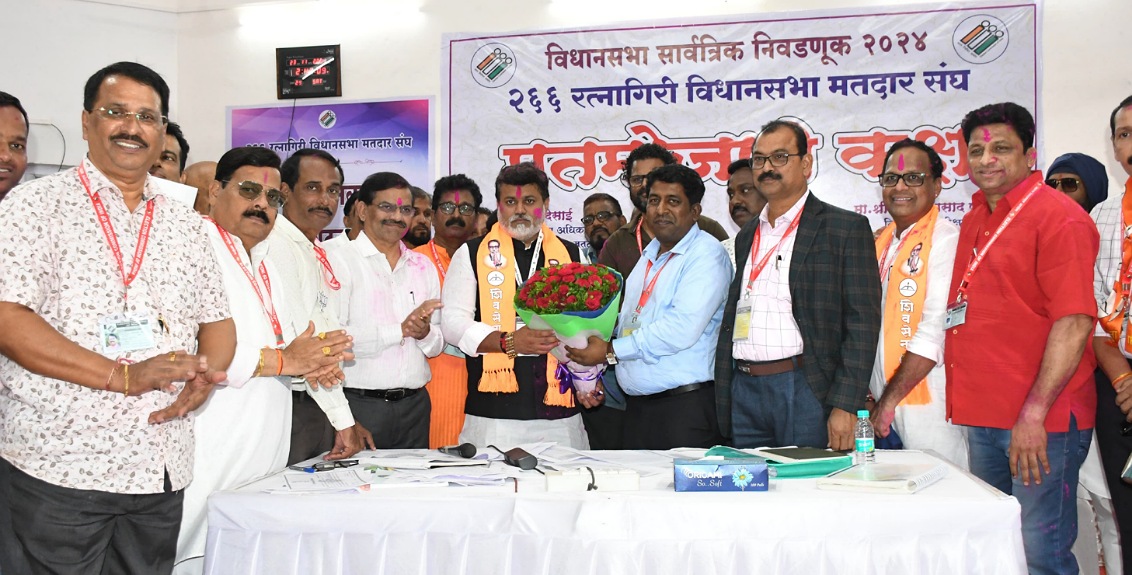 रत्नागिरी: 266 रत्नागिरी विधानसभा मतदार संघात सर्वाधिक 1 लाख 11 हजार 335 मते मिळवून उदय रविंद्र सामंत हे विजयी झाल्याचे निवडणूक निर्णय अधिकारी जीवन देसाई यांनी घोषित केले. बाळ माने यांना दुसऱ्या क्रमांकाची 69 हजार 745 इतकी मते मिळाली. येथील सामाजिक न्याय भवन मध्ये आज सकाळपासून मतमोजणीला प्रारंभ झाला. यावेळी निवडणूक सामान्य निरीक्षक जनक प्रसाद पाठक, जिल्हाधिकारी तथा जिल्हा निवडणूक अधिकारी एम देवेंदर सिंह, पोलीस अधीक्षक धनंजय कुलकर्णी यांनी भेट देऊन मतमोजणी प्रक्रियेची पाहणी केली. पहिल्या फेरीपासूनच श्री. सामंत हे आघाडीवर होते. निवडणूक निर्णय अधिकारी श्री. देसाई यांनी मतमोजणी नंतर सर्वाधिक मते मिळालेल्या श्री. सामंत यांना विजयी घोषित केले. यानंतर त्यांनी प्रमाणपत्र आणि बुके देऊन त्यांचे अभिनंदन केले. यावेळी निवडणूक सामान्य निरीक्षक श्री. पाठक उपस्थित होते.