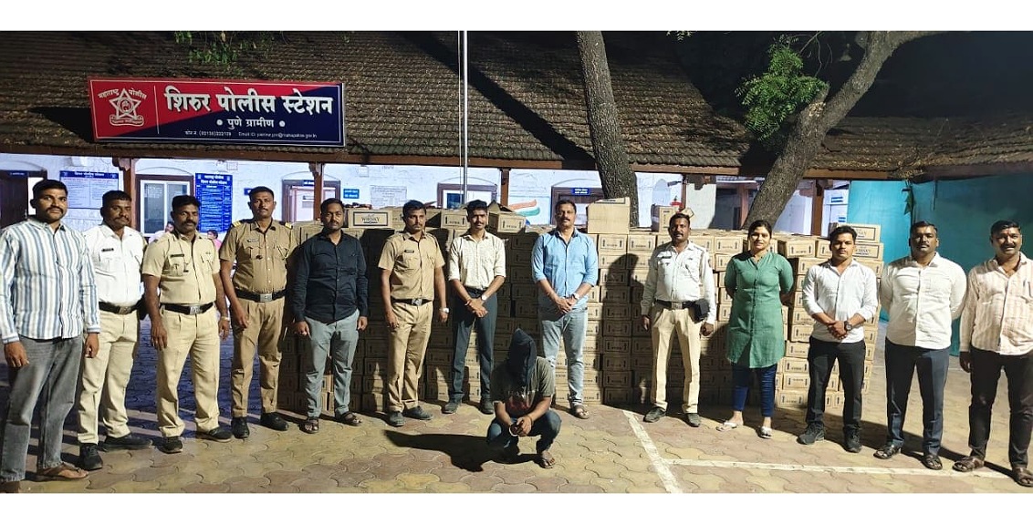 शिरुर पोलिसांनी दिलेल्या माहितीनुसार आज (दि १०) मार्च रोजी सायंकाळच्या दरम्यान न्हावरे फाटा येथे शिरुर पोलीस स्टेशनचे ट्राफिक पोलीस अंमलदार शेखर झाडबुके व पोलिस अमलदार आप्पासाहेब कदम हे पेट्रोलिंग करत असताना त्यांना गोपनीय बातमीदाराकडुन माहिती मिळाली की चौफुल्यावर शिरुरकडे येणाऱ्या ट्रक मध्ये दारुची वाहतूक होत आहे.