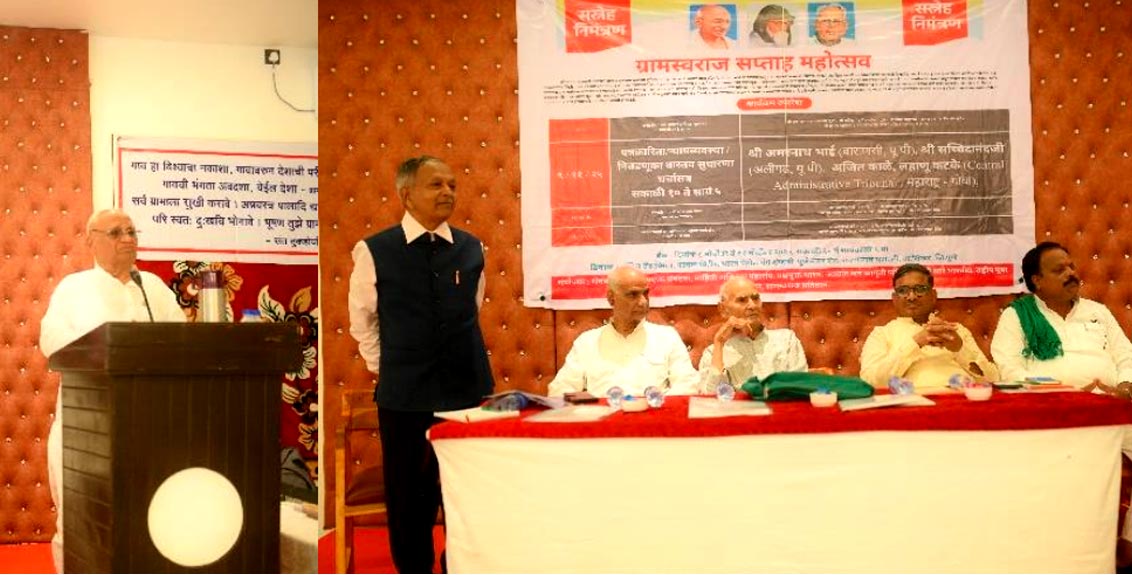 गावांना, शेतकऱ्यांना संपूर्ण स्वराज्य स्वातंत्र्य मिळाल्याशिवाय स्वावलंबी गाव निर्माण होणार नाही. स्वावलंबी गावाचे विचारसरणीतूनच न्याय, पत्रकारिता, निवणडणूका यांची उत्तम व्यवस्था जन्माला येईल. जनतेमध्ये आज न्यायपालिका, निवणडणूका, पत्रकारिता याबाबत विश्वासहर्ता संकटात आली आहे, ही बाब चिंताजनक असल्याचे मत मान्यवरांनी चर्चासत्रात मांडले.