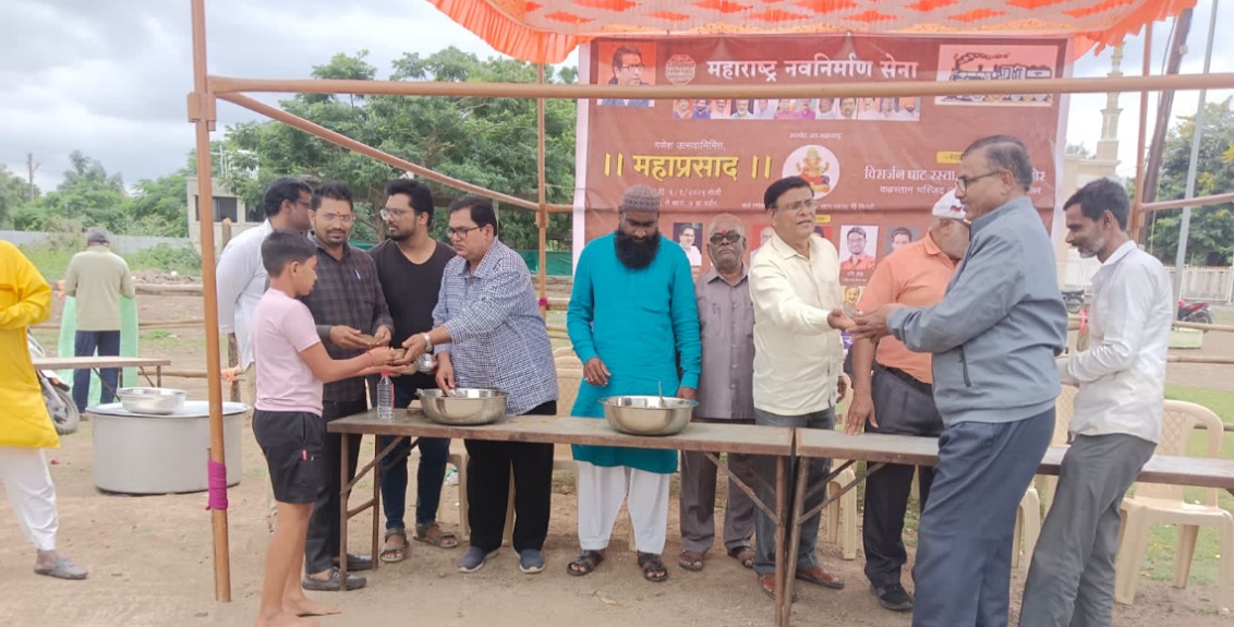 मनसे शिरूरच्या वतीने विसर्जन घाटावर महाप्रसादाचे वाटप; हजारो गणेशभक्तांनी घेतला लाभ