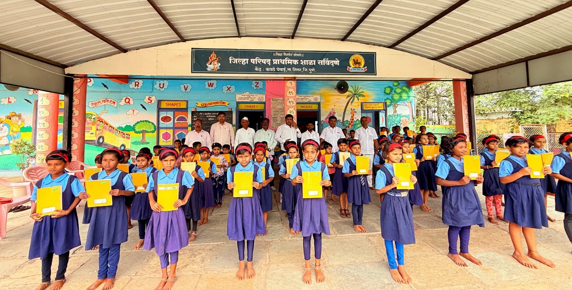 सविंदणे येथे जाणीव शैक्षणिक १ संकल्पना ट्रस्टतर्फे विद्यार्थ्यांना वह्या व खाऊ वाटप