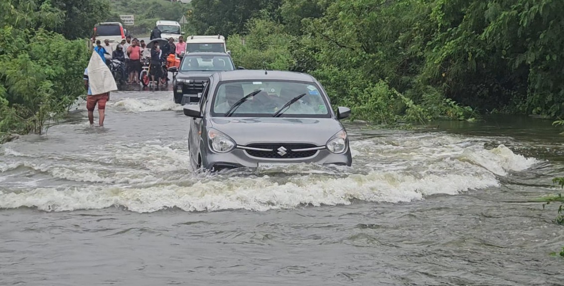 Video; शिरुर तालुक्यात ढगफुटी सदृश्य पाऊस; ओढे-नाले तुडुंब अनेक छोटे पुल पाण्याखाली